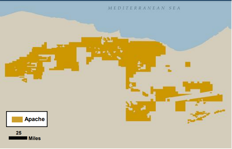 The Apache subsidiary that will become the sole contractor under the PSC is owned by an Apache-operated joint venture owned two-thirds by Apache and one-third by Sinopec.