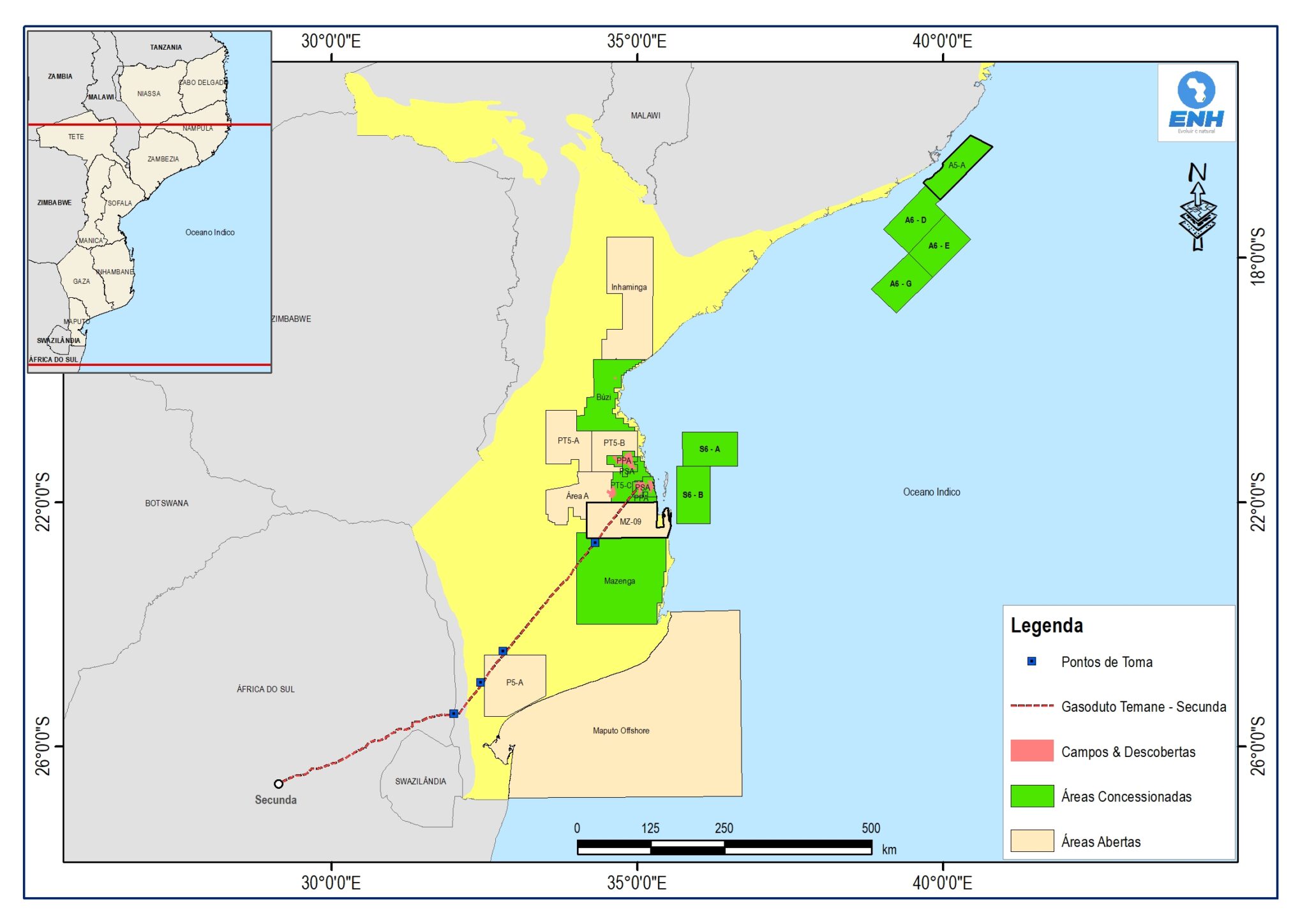 Resulting from the technical work developed by the ENH and Sasol research teams, the recent discovery, which is the second in Area PT5-C in different reservoirs and prospects, consolidates a new page in national geological knowledge associated with the potential for hydrocarbon occurrences in the vicinity of the Pande (G6 – in production; and G10 & G11 and G11A under evaluation), Temane (G9 – in production; G6a, G8, G10, G11, G11a & G12, G12a under development), Inhassoro (G6 and G10 under development) and Buzi (G9 under evaluation) gas fields, as it proves the presence of gas in the reservoirs of the Lower Grudja formation in addition to the Pande, Temane, Inhassoro and Buzi areas.